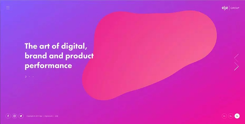 2021年是追求极限色彩的一年,之前,许多品牌和设计师在构建网站时都会打安全牌,选择所谓的网页设计的安全色。可是今年,许多设计师开始大胆采用饱和色彩,并加入动感的阴影,还有非水平式设计的Header,让网页更有动感和个性。而随着技术革新和显示屏画质的提高,许多品牌的宣传网站也通过这种动感和饱和色的搭配,来吸引消费者的眼球,为品牌造势。