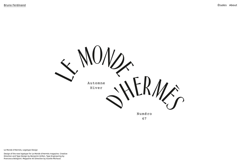 Bruno Ferdinand 是一位在字体设计上有着突出技巧的设计师,他的作品集网站中不仅能够体现他在字体排版上的独特想法,而且还表现出他近乎强迫症的时尚口味倾向。整个网站的设计简约,美观,质朴也令人难忘。