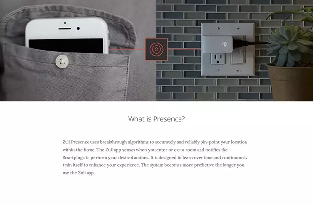 Zuli网站中为用户展示的是一款新颖的智能家居产品,其中首页Banner以产品使用场景为背景。