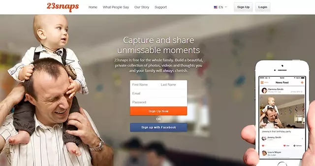 打开23snaps网站后,左侧图片瞬间吸引人的注意力,给人一种亲切感。
