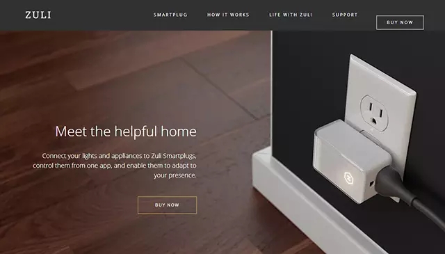 Zuli网站中为用户展示的是一款新颖的智能家居产品,其中首页Banner以产品使用场景为背景。