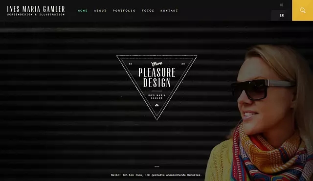 Ines Maria Gamler网站中展示的女性正侧着脸,双眼注视网站中间的文字。打开网站时,大多数人会首先关注人物的脸部,并进一步受到人物视线的引导。