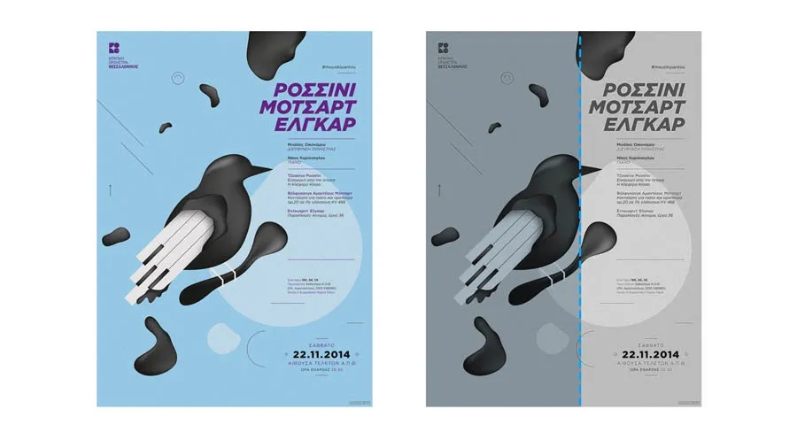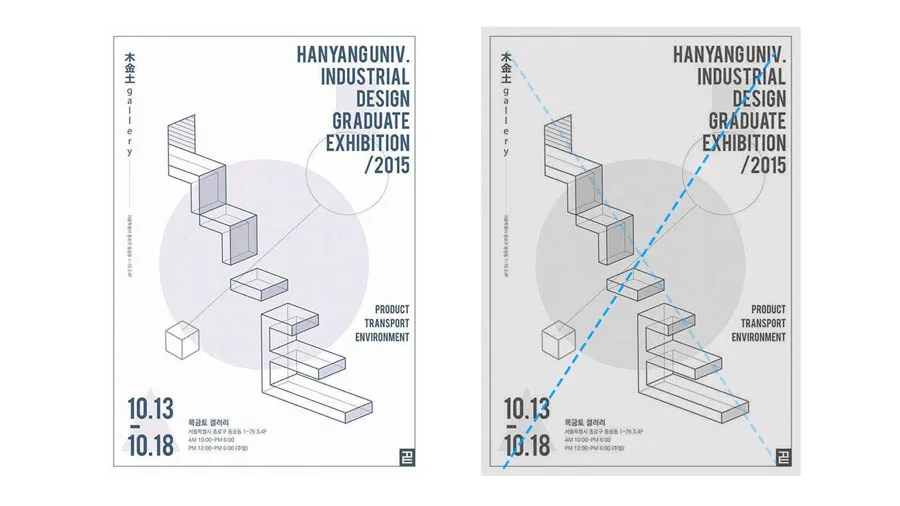 文案摆放在版面的对角线方向,一方面避免了司空见惯的居中版面,一方面给中心主体留出了更多的创作空间;另外中心的图形也可以是对角线的设计,这样会让整个构图看起来比较平衡。