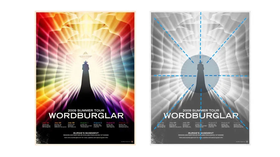 点缀元素围绕中心的文案或者图形发射,这样的构图会让中心的视觉容易聚焦,视觉冲击感会更强烈。