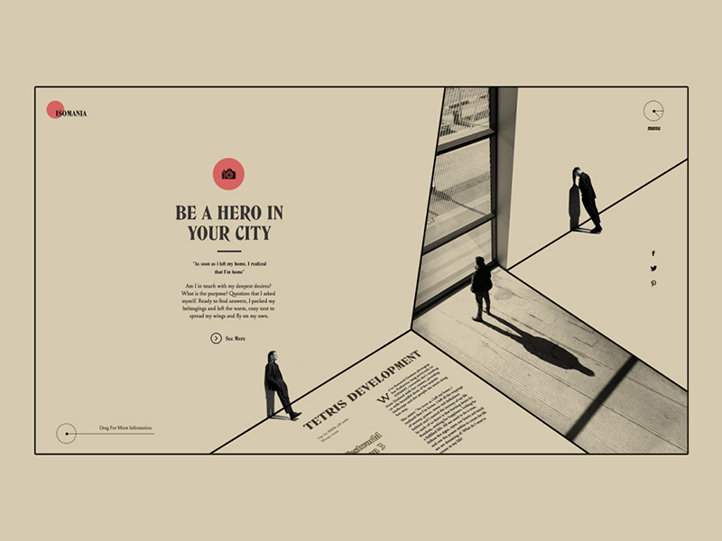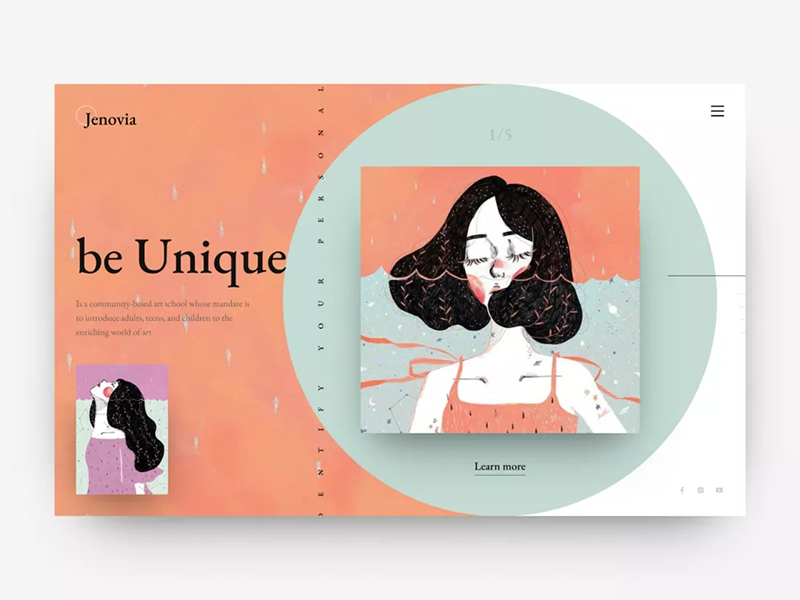 通常而言,你需要将插画当作重要的视觉焦点来使用,让它周围有足够多的留白,这样能够保持极简设计应有的呼吸感。这个时候,经典的排版布局方式就可以发挥极大的作用,左右布局、上下布局、中心式布局等等,不用复杂的花样,就可以制造出让人惊喜的效果。当然,记得控制好元素和整体布局之间的空间比例。