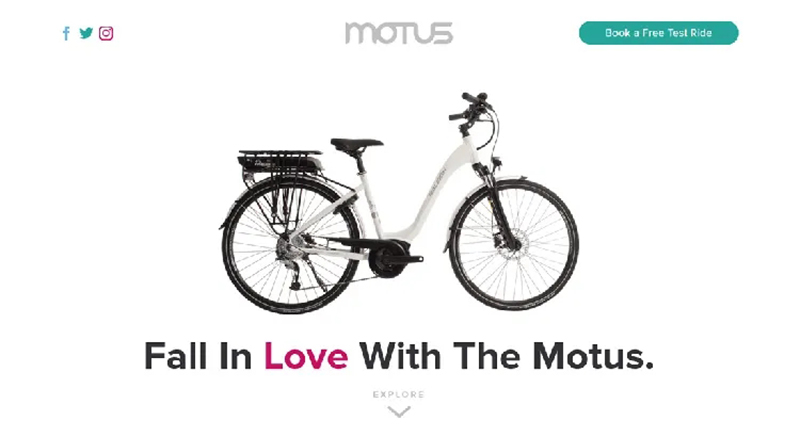 Motus 这个网站首页主要是用来展示自行车的,白色背景+产品+大标题的设计模式贯穿整个设计,其中提亮的彩色文本在不同的产品中各不相同,但是这种“变化”也是整体一致性的体现。整个设计从风格到一致性的把控上,都贴合极简主义的精神。保持设计的一致,是最基本的设计规则。
