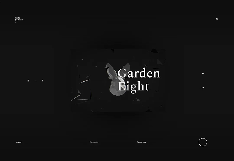 Kenta Toshikura 的网站是最典型的极简主义设计风格,网站在功能上明显是以展示为主,在视觉设计和排版上没有采用一些很独特的技巧,不过借助3D效果倒是意外的让人觉得很有趣。